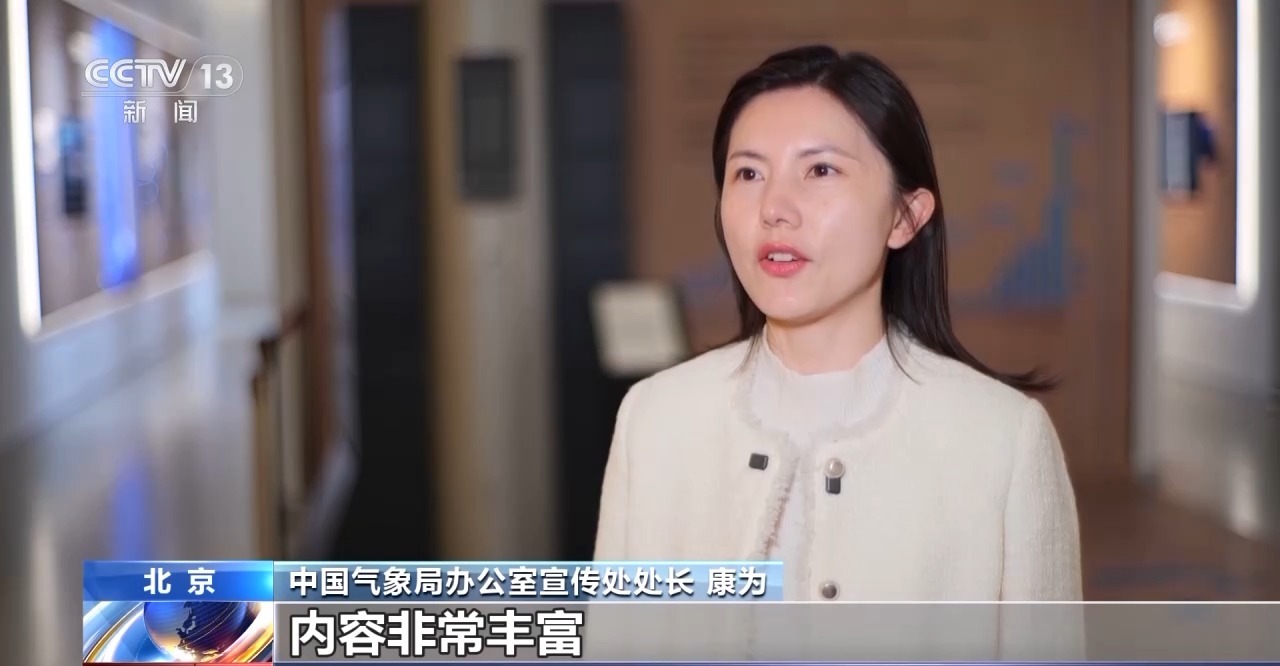 中国气象局办公室宣传处处长 康为:中国气象局园区主场的活动内容非常丰富,沉浸式体验+气象硬核装备的展示+趣味互动三合一。除了线下开放相关的气象科普展馆、气象科普区,我们还在线上举办了一系列形式丰富、内容多样的宣传科普活动。