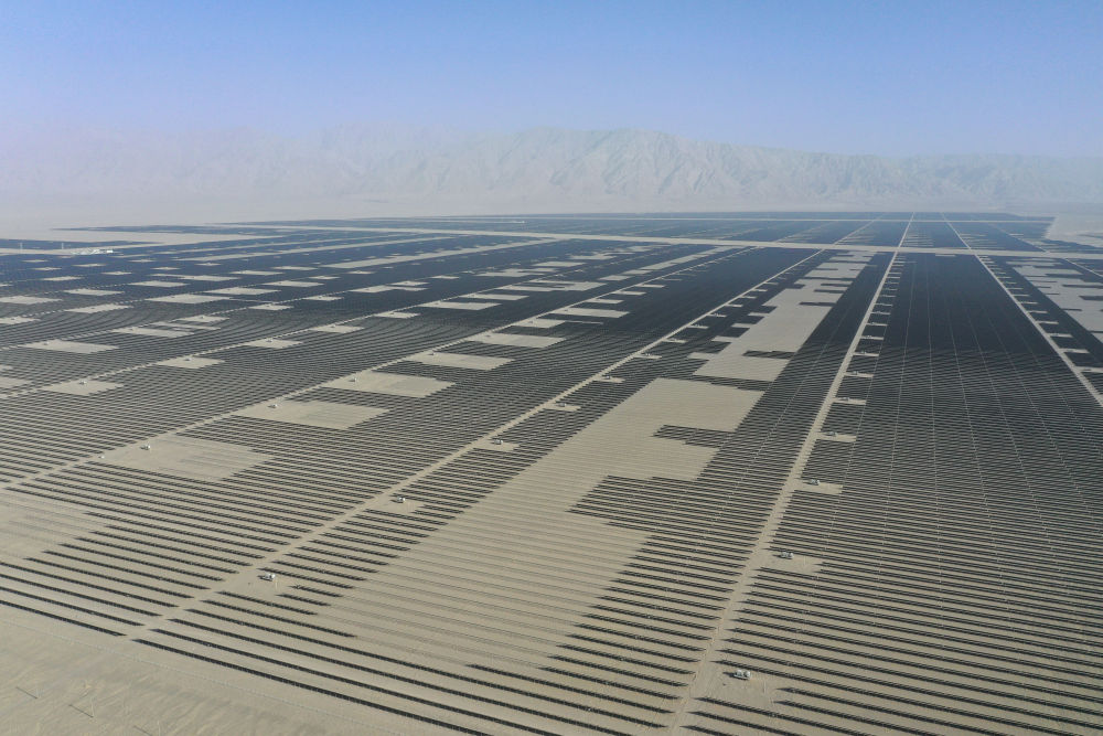 这是2025年6月26日拍摄的新疆巴音郭楞蒙古自治州若羌县境内的一处400万千瓦光伏项目现场。新华社记者丁磊 摄