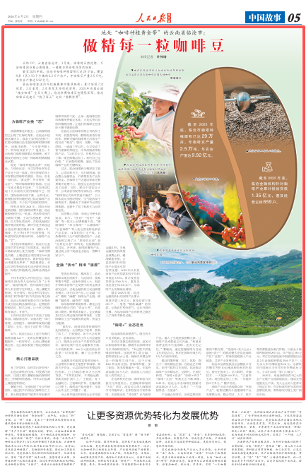 2025年,库迪咖啡投资5亿元的全产业链产业园落地临沧,建成全智能脱壳生产线,龙头企业的入驻带来了稳定订单、科学标准和更完善的利益联结机制,帮助咖农对接上更广阔的市场。(记者 叶传增)