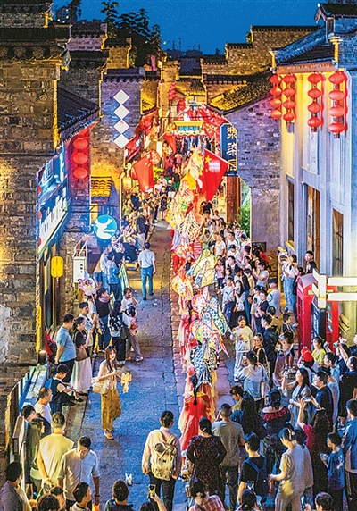 在安徽省芜湖市芜湖古城,“皖南鱼龙大会”以日夜联动的沉浸式体验矩阵激活文旅消费,让“看民俗、逛市集、品美食”成为众多游客的首选。图为10月3日,非遗民俗无为鱼灯巡游展演现场。陶海金摄(人民视觉)