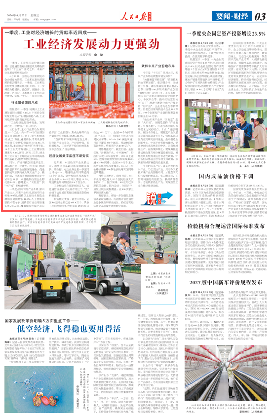 数据显示,一季度,规模以上工业增加值同比增长6.1%,31个省份全部实现正增长,行业增长面超八成,工业对经济增长的贡献率近四成。