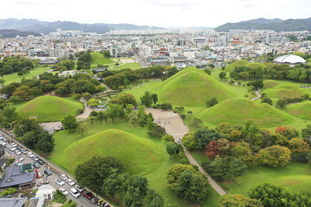 9月21日拍摄的韩国庆州的大陵苑景区一带(无人机照片)。