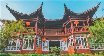 走出铁琴铜剑楼,沈亦欣沿着门前的青石板路往前走,几个小伙伴已在不远处等候。街区书场内,吴侬软语的评弹婉转开唱,瞿氏五代人藏书护书的故事伴着琵琶声传入耳中,引得台下掌声阵阵。