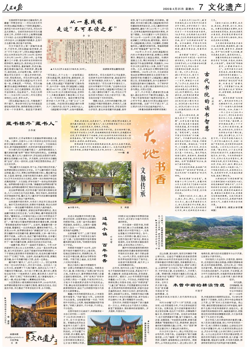阅读,是读过往,也是读当下。当年轻人捧起《资治通鉴》,当清代藏书楼迎来一位位“藏书人”,古人的智慧写进了今人心灵的“朋友圈”,让我们有定力、有眼光、不焦虑。