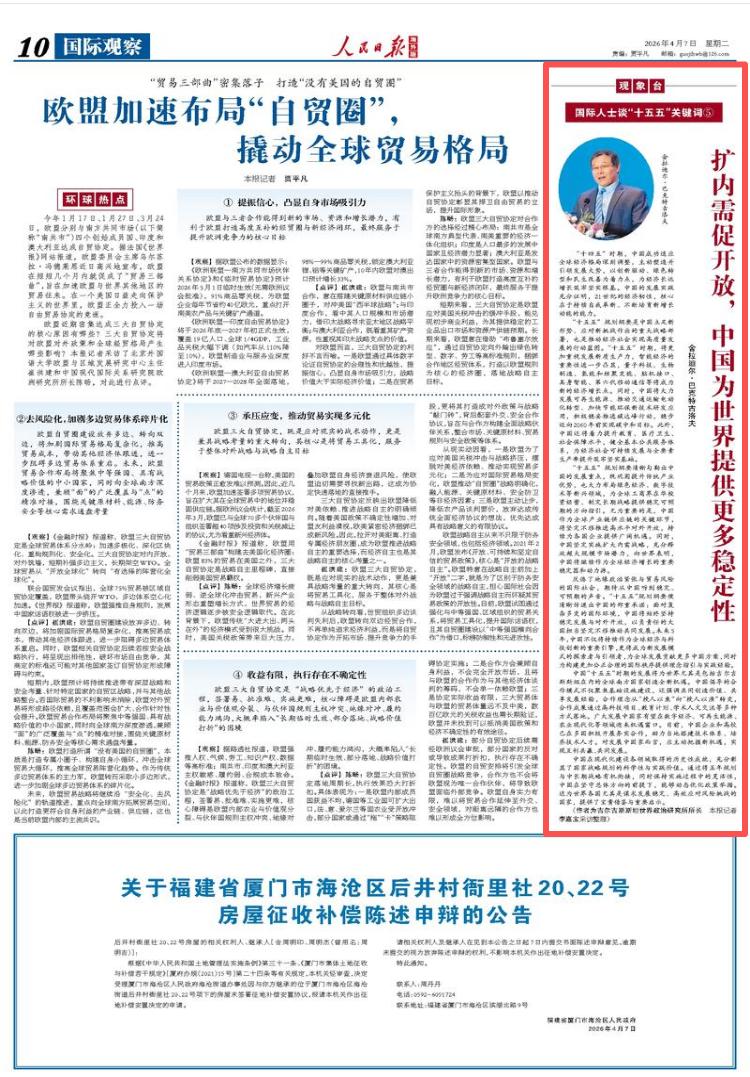 《人民日报海外版》(2026年04月07日 第 10 版)