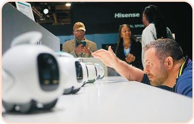 在二〇二六年美国拉斯维加斯消费电子展上,观展者与中国品牌AI智能陪伴机器人互动。
