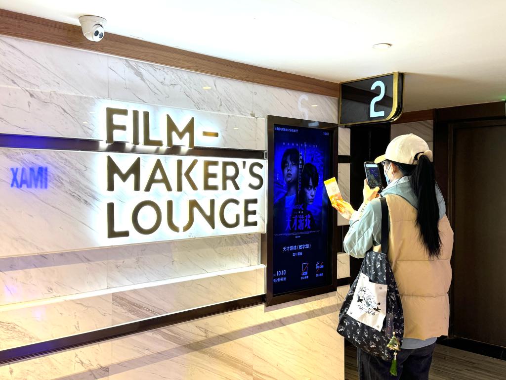 观众在影厅外拍照打卡。新华社记者邢拓 摄