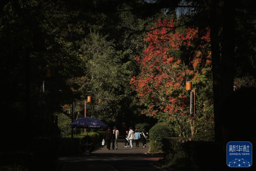↑ 10月6日,游客在长春市南湖公园观赏红叶。新华社记者 许畅 摄
