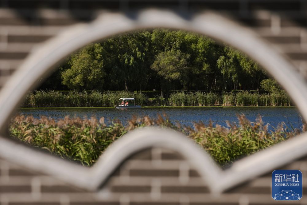 ↑ 10月6日,游客在长春市南湖公园乘船游玩。新华社记者 许畅 摄