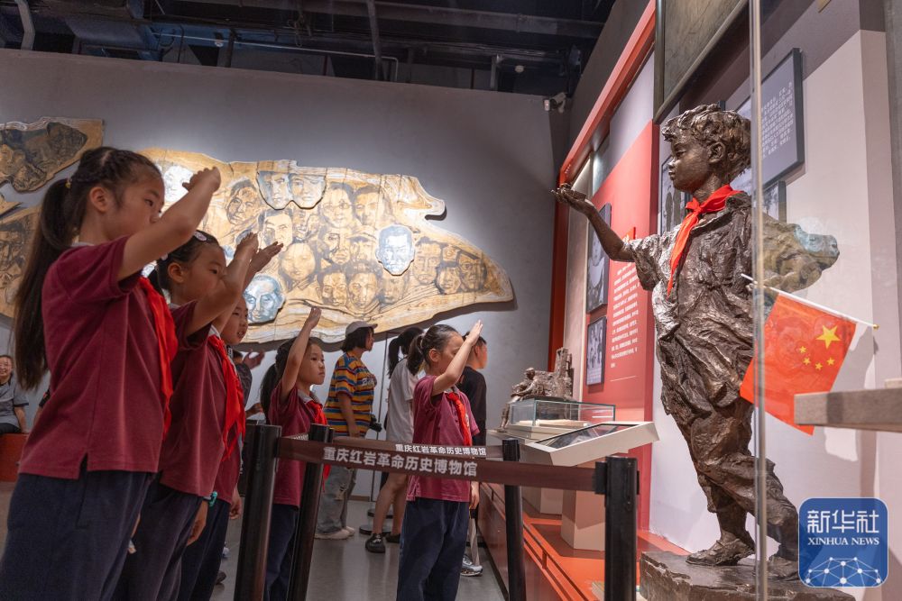 ↑ 10月6日,来自渝北巴蜀小学二年级九班的同学们在重庆歌乐山革命纪念馆参观。新华社记者 陈诚 摄