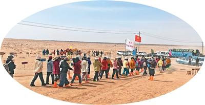 来自全国各地的年轻人相聚甘肃省民勤县,在沙漠中种下梭梭,也种下春天与希望。