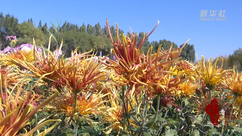 今年,新疆农业博览园特地引进了鲜切菊、大丽菊、波斯菊、地贝菊等1006种名贵菊花,种植面积达70亩。目前园中菊花已全部开放,花期将持续至10月中旬。