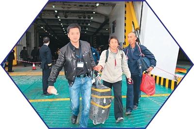 徐伟春(左)参与撤侨行动。本文图片均为受访者提供