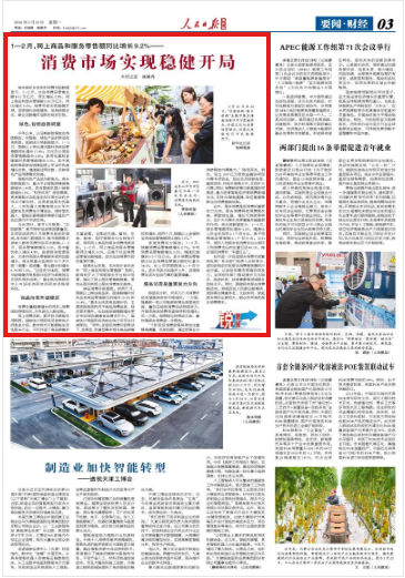 商务部近日发布的消费市场数据显示,1—2月,社会消费品零售总额8.61万亿元、同比增长2.8%,网上商品和服务零售额3.25万亿元、同比增长9.2%。消费市场实现稳健开局,呈现增长动能强劲、结构持续优化、新业态新模式活跃的良好态势。
