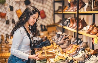 今年一季度,经重庆江北国际机场口岸入境外籍旅客超13.7万人次,同比增长106%。图为在重庆市渝中区某小商品批发中心,外国游客在选购女鞋。新华社记者 黄伟摄