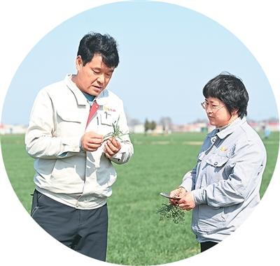 常清(左)在查看小麦的长势。