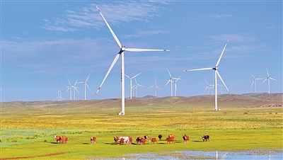 内蒙古自治区乌兰察布市,风力发电机将风能转化为绿色电能。宋卫星摄(人民视觉)