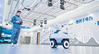 在河北雄安新区雄安科创中心中试基地,一家科技企业的工作人员在调试巡检机器人。新华社记者 牟 宇摄