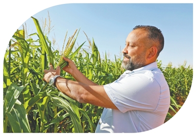 “埃及未来”项目奥韦纳特片区机电部门经理胡萨里在检查农作物生长情况。