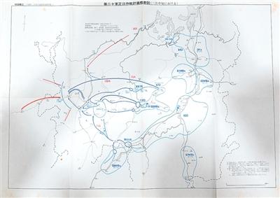 中国人民抗战胜利受降纪念馆馆长吴建宏介绍,这9张图纸从日方视角记录了1945年4月9日至6月7日发生在湘西雪峰山地区的湘西会战。由于此战的核心目标是夺取芷江空军基地,日方称之为“芷江攻略战”,中方则称“芷江保卫战”或“雪峰山会战”。这是中国抗日战争正面战场的最后一次会战。