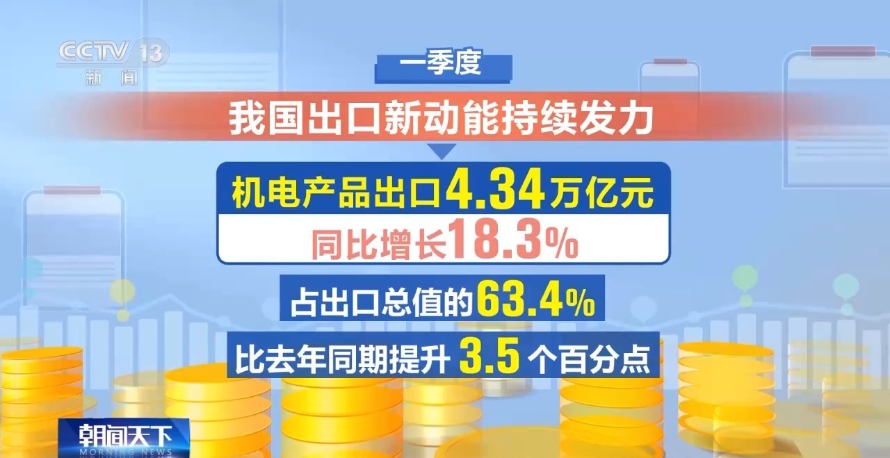 4月20日的《一季度经济观察》,关注外贸里的新变化。最新数据显示,今年一季度,我国货物贸易进出口11.84万亿元,同比增长15%,规模创历史同期新高。这样亮眼的外贸表现,背后有哪些动能在支撑?