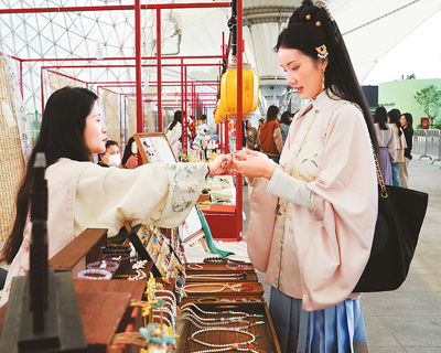 自2018年起,中国丝绸博物馆每年举办“国丝汉服节”,吸引众多汉服爱好者、汉服商家参加。他们不仅欣赏跨越千年的服饰文物,也从中获得启发和灵感。