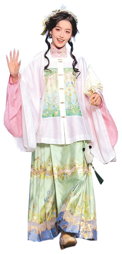 “除马面裙外,目前市面上由宋制服装中的褙子改良而来的服装样式也很受欢迎,明制服装中的立领则被大量应用于新中式服装。”戴雨晴说,如今的汉服已兼具传统文化和流行时尚的双重属性。