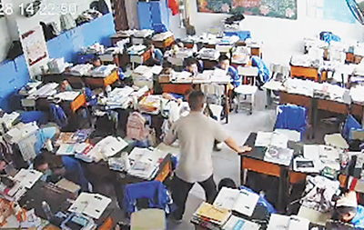 “不要慌,按照平时演练的路线撤离。”明宗龙不断提醒,等学生全部撤离后,才最后一个离开教室。